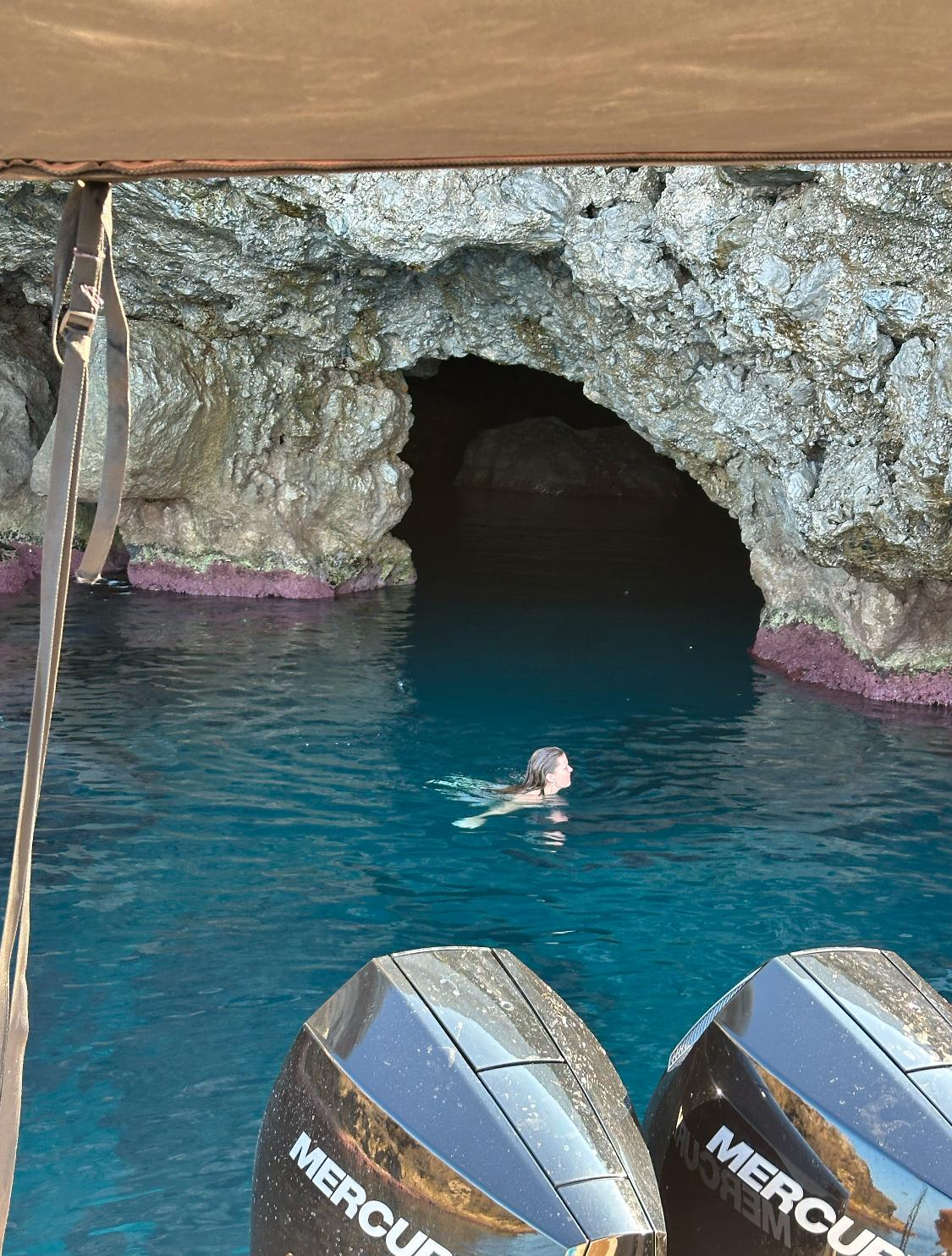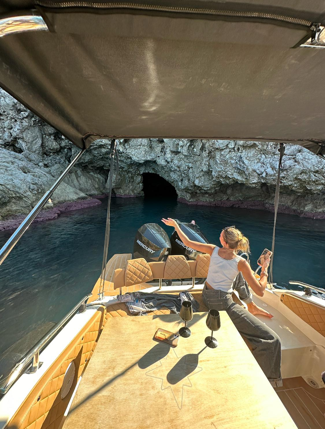 Linee accattivanti, comfort esterno pazzesco, rifiniture eccellenti. Internamente troviamo cabina doppia a prua, e una cabina più piccola sotto la scaletta d’ingresso. bagno separato con doccetta estraibile. Prendisole di poppa intelligente e ben studiato, con lavello, fornello e frigo sul laterale, in zona dedicata. Doppio passaggio a prua, dove troviamo un prendisole tra i più grandi del suo range. Prestazioni della carena da oscar, con performance quasi da offshore.